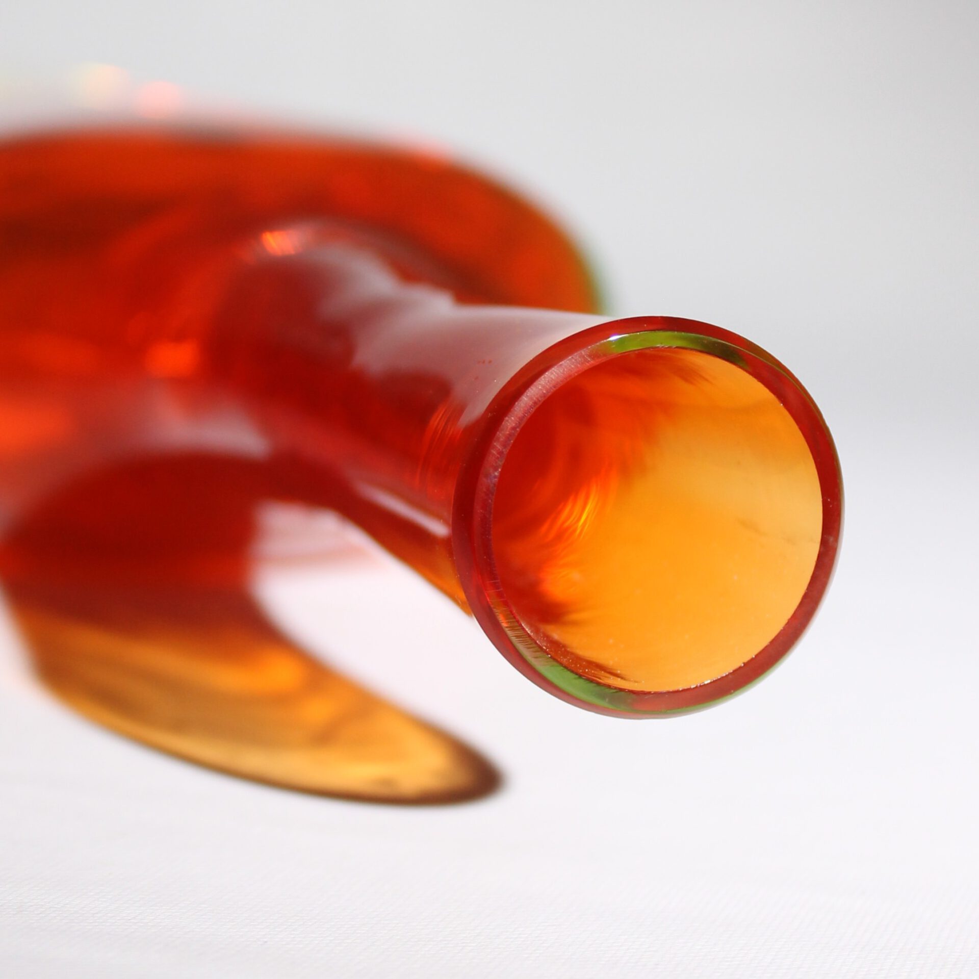 Hergestellt bei Vetreria Gino Cenedese & C., Murano-Italien. Gelbes Sommerso-Uranglas mit Rotem Innenüberfang.