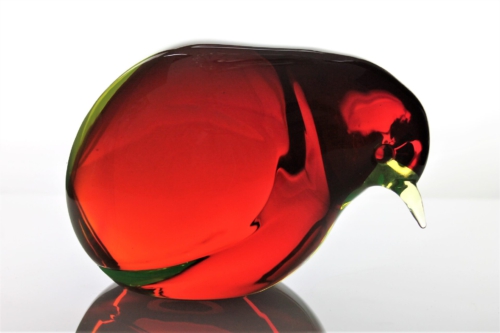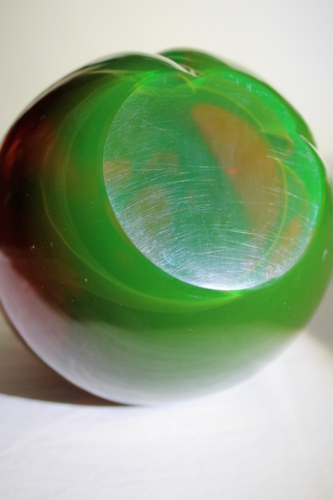 Massives Uran-Glas rot unterfangen, frei von Hand geformt und poliert.