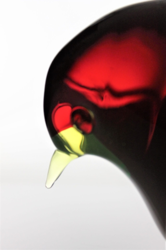 Seguso Vetri d’Arte, pair of very large and heavy birds c. 1960s. Made of solid uranium glass body overlaid with submerged layer in ruby red tinted glass, in so called “sommerso-technique”. Free formed and hand polished.